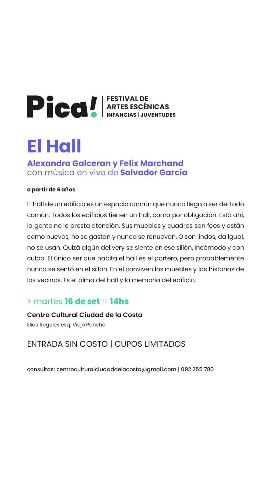 Locales PICA! FESTIVAL DE ARTES ESCÉNICAS EN EL CENTRO CULTURAL DE CIUDAD DE LA COSTA ÚLTIMA ACTUALIZACIÓN: 15/09/25 Añadir un comentario Compartir Compartir Blanca Elgart 15/09/2025 15/09/2025 Comparte este artículo Facebook Twitter Artículo anterior 6to CABILDO MUNICIPAL EN EL CENTRO CULTURAL DE CIUDAD DE LA COSTA Artículo siguiente CINE EN EL CENTRO CULTURAL CIUDAD DE LA COSTA DEJA UN COMENTARIO DEJA UN COMENTARIO Deja una respuesta Cancelar la respuestaTu dirección de correo electrónico no será publicada. Los campos obligatorios están marcados con *Comentario * Nombre * Correo electrónico * Web Guarda mi nombre, correo electrónico y web en este navegador para la próxima vez que comente.